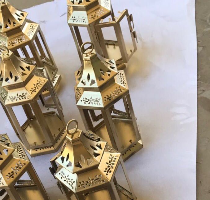After months of indecision and back and fourth, I'm finally happy with this. I'm planning on putting fresh hydrangeas around the wreath and 5 more votive candles around. 😊 I spray painted my lanterns gold.