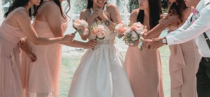 What colors/styles are your bridesmaids wearing? Are the dresses all the same style/color? Or different? Long dresses, or short? Share a picture of the dresses your bridesmaids are wearing for your wedding!