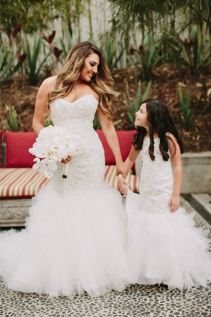 I was playing with the idea of the two flower girls having the same dress as me. I find it cute, but I don't think I'll do that because of their ages (3 & 4). What are your thoughts on matching bride and flower girl? Mini me matching dresses...