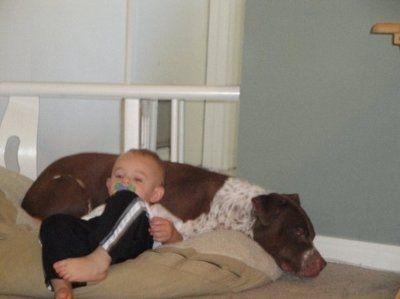Well she is far from a puppy the family was told shes 7months and they think she maybe mixed with bull mastiff Well shes huge actually bigger than my current 9 year old american pit bull. WELL we took her. Which may be a mistake. She is super sweet...