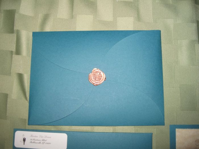 Heres my finalized invites I love um!! First pic is our outer envelope with cartoon my sis drew of us 2nd pic is rsvp card front is our names date initial meal pref with pics & description of chicken beef n veg options back date then "We have...