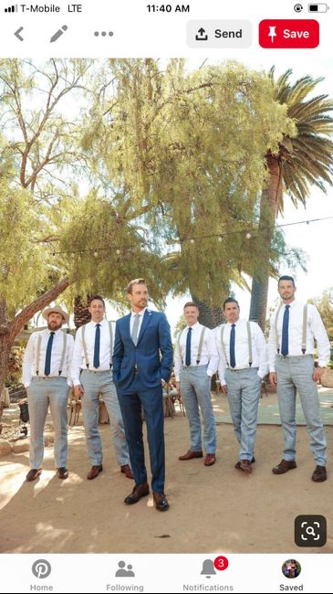 What will your groom and the guys be wearing?? This is our inspiration...adding some gold yo the groomsmen but my groom and our son will definitely be wearing the white with black touches on the jacket and black pants.