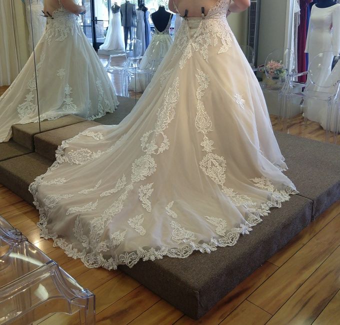 While dress shopping this weekend with my 7 family/soon to be family members, I tried on a few dresses to humor them! I wanted a fitted, more plain, minimal lace/beading dress and this is the gown they handed me (attached). I came out and all the...