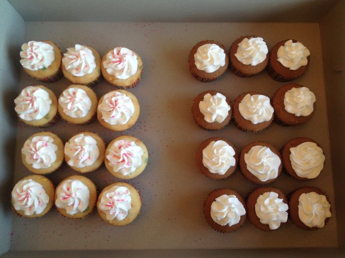 I am having a cupcake tower so my lady dropped off 2 flavors I wanted to try. Vanilla with hot pink confetti (Wedding Cake Flavor) and a spice cake both with vanilla buttercream. OMG they are so delicious. She gave me a dozen of each . The kids are...