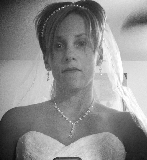 I tried on my dress tonight with all my accessories to see how it all looked together. I forgot my black sash though. Dress still needs alterations, too big up top. Can't believe first fitting is on January 4! I told FH to stay downstairs lol. Anyone...
