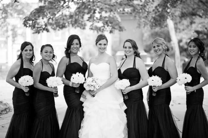 How much were the bridesmaids dresses you chose for your wedding? What designer did you use? Include pictures if you'd like!