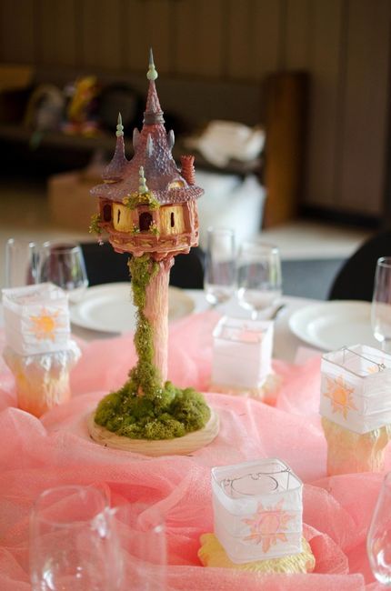 I am doing a simple wedding with the colors from the movie (light purple and yellow) . I want to do something that resembles the movie in a classy way fit for a wedding. Anyone have ideas? So far I'm thinking paper lanterns with candles on the inside...