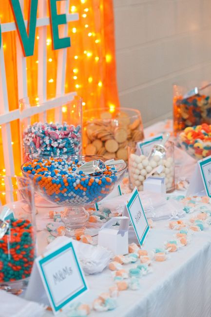 That we HAVE to have a candy bar.... Can I see tips and pics for your candy bar stuff? *UPDATE*: FH bought 3lbs each 6 different kinds of candy in pastel colors plus scoops for $100 (mostly sale items). We are borrowing large jars with clasps from...
