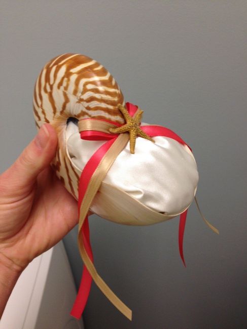 Here's my ring bearer "pillow" that I ordered from etsy. I'm very pleased with it for my beach wedding! What do you ladies think?