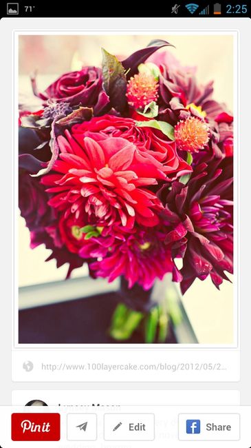 Here's the look I'm going for plus a few mini sunflowers. The florist told me many brides get ivory or very pale bouquets because bolder colors draw the guest's eye away from your face/dress and go right to the bouquet. But, I won't be carrying my...