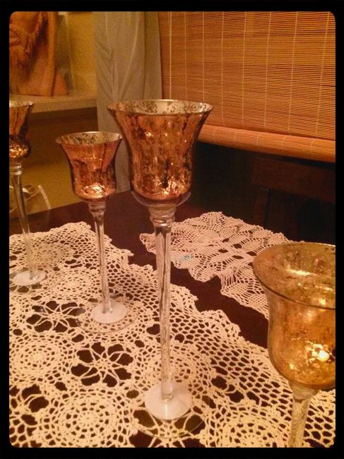 Ladies, if you don't know...now you know! Do not buy votives, stem wear, cake stands, serving wear, vases, vintage suitcases. lace etc without hitting up your local thrift shops!!! I have been shopping online for reception & table décor for a few...