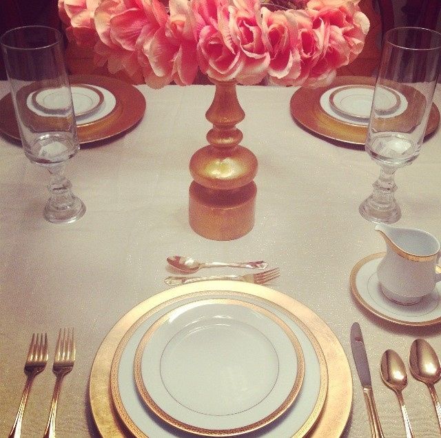 4095 days agoI just wanted your opinions! For the centerpiece I used a gold candle holder I bought from Home Goods about two years ago and I made a floral halo with the supplies in the picture. Note: I'm just testing things out so I used fake flowers and supplies...