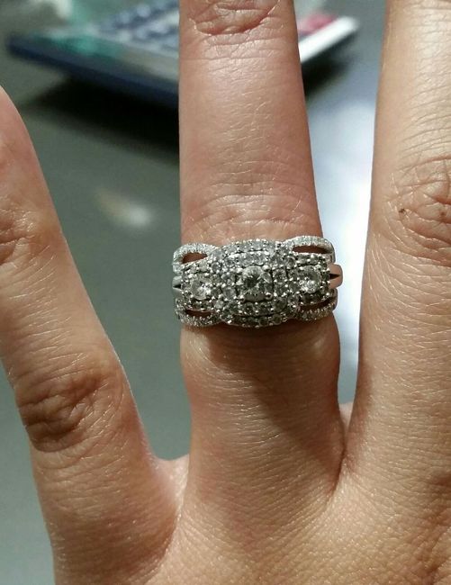 Here is mine! Traditional and classic, kind of like my guy The stone is so clear it's absolutely stunning in the right light (I've found that Starbucks is one of the best places to stare at my e-ring lol). The other ring is the wedding band I'd...