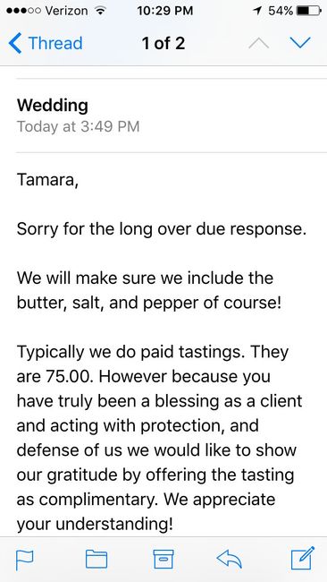 My venue takes weeks to respond back to me, yes I know it's wedding season but this is the first email I've gotten in about a month. It did make me very happy. Happy we get to save $75.