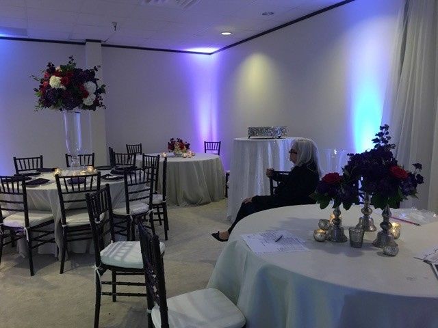 We had our mock-up appointment last night with our floral and linen company so I could get a good idea of what our centerpieces would look like and make any necessary changes. We are so so SO happy with them and I can't wait to see the room filled on...