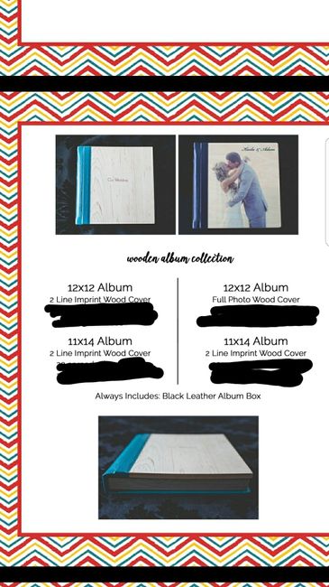 Dh and I can't seem to figure out which one of the 3 styles we like better. I'll post them all individually (mobile). I crossed out the prices, just in case our photographer doesn't want her prices known. The hither collection and acrylic are...
