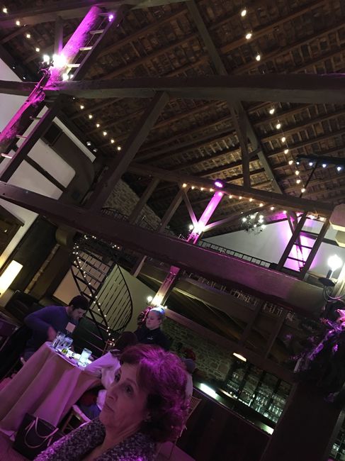 So my wedding is 6 months away and we were there for a tasting last night. I was trying to figure out ideas for decor while I was there last night. What would you do with the following picture? I was thinking a rope light around the bottom beams and...