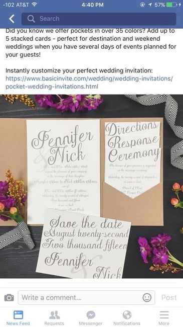 So I saw an ad on Facebook for these invites with pockets! I love that idea instead of everything shoved in an envelope. Does anyone know any other company that does this? They don't have too many designs to chose from and would like more options!