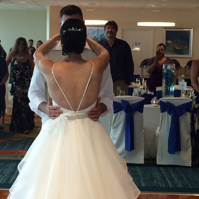 Well, I'm bored and I noticed there seemed to be a lot of threads about dresses today. So let's show off our dresses and the reasons why we chose them! The picture doesn't do the dress any justice. It's ivory over blush and also toned down my boobs...