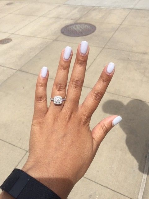 I just got my nails done and love how my mani looks with my engagement rings! I'm wearin Fiji by Essie. What colors ya rockin? Show em off!