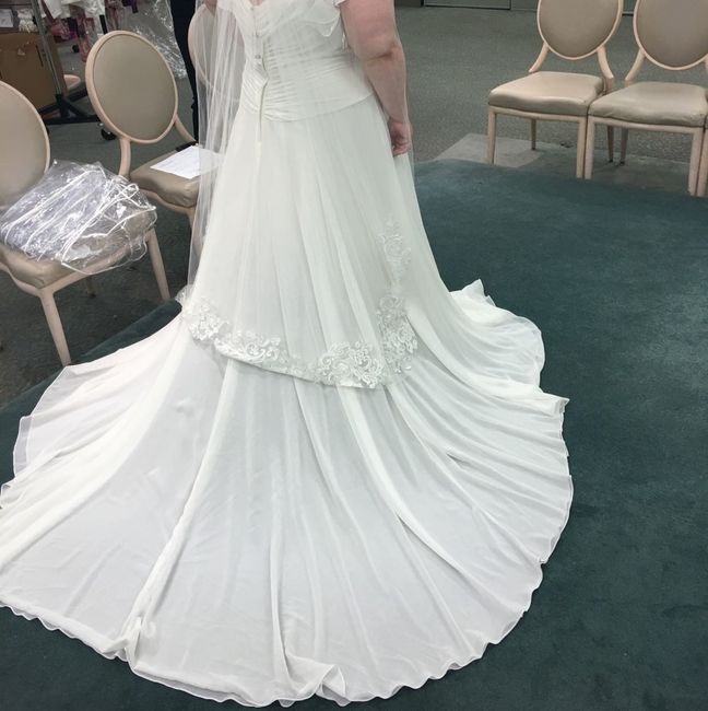 I'm trying to decide on my veil. I'm planning to go through Etsy so I wont have the ability to try it on before ordering. I'm stuck between a floor length 6ft long veil and a 7.5 ft long chapel veil. My dress has a long train but I don't want a...