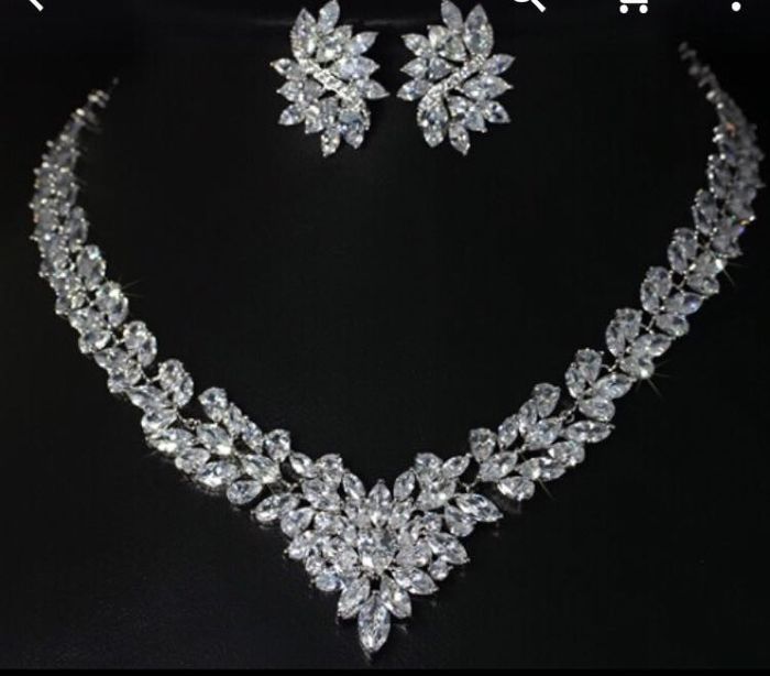 Hopefully the picture loaded... Anyhow, was wondering what jewelry were the brides wearing? If the pic came thru I was debating on the earrings ( bottom left) i feel they might be to large for the 3 stranded floating freshwater pearl necklace.