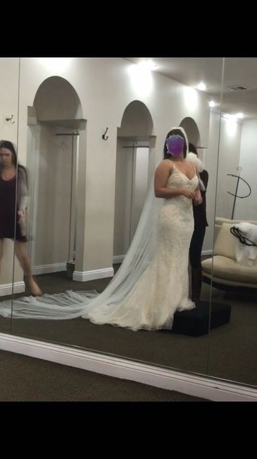 Okay I have about 3 months before I start my fittings/alterations but I just got the call that my veil is in which got my mind rolling! Lol. I absolutely LOVE my veil and the length, but it's got a square bottom and my dress has a round train... idk...