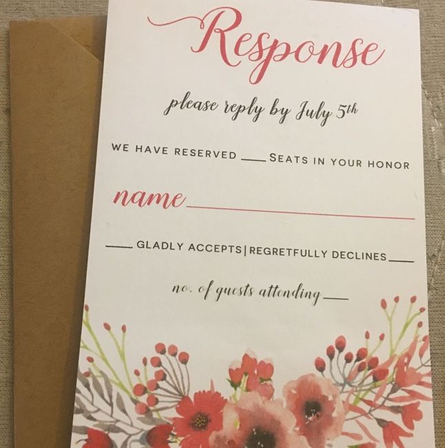 I told my lady I wanted the "you have __ seats in your honor. __ of __ attending." Name of guests_______ But I also really need to know how many will be at the ceremony. It's all being done in one place and if I don't have to rent as many chairs I'd...