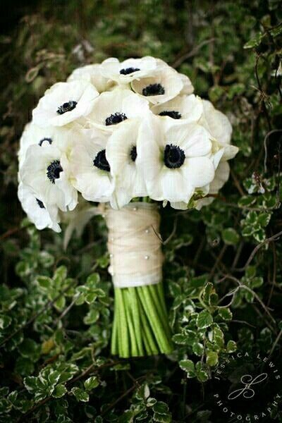 My wedding dress is white with a black lace overlay on the top area. I am having the darnedest time trying to figure out what kind of flowers would look good with it. My bridesmaids are wearing all long, black chiffon dresses in varying styles (to...