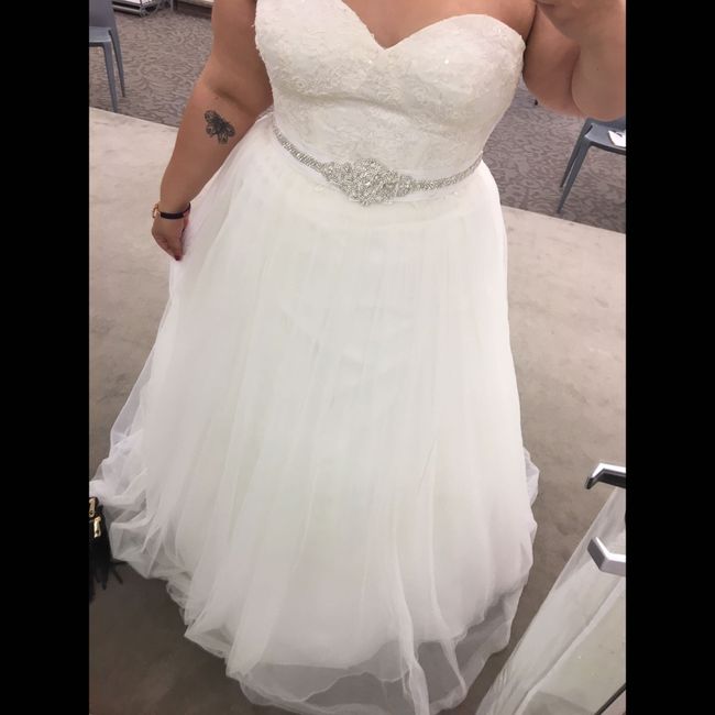 Hi everyone! I tried on a few wedding dresses and this was my favorite, but when I seen it on me in a picture, I felt it was not as flattering as it looked in the mirror when I had on. This one made my mom cry. I'd like opinions on the fit and if it...