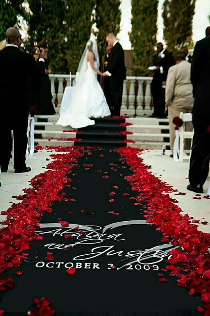 I have a while before I really need to commit to an aisle runner, but I like having everything planned early, just in case. Two of the pictures are for design reference, colors will be black and red. Let me know what you all think! #1. Swirl petals...