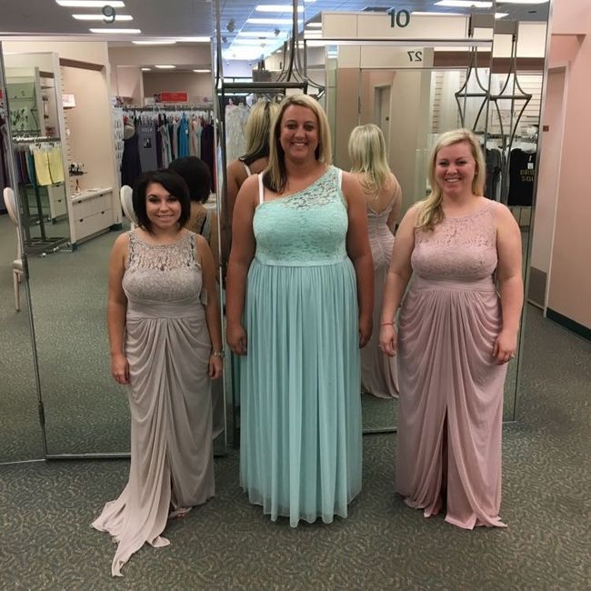 My dress is strapless with a sweetheart neckline. I'm having a hard time deciding if I want my BM dresses to be the same/similar necklines or have straps or like a lace type top. Is anyone doing a different neckline/straps than their gown and if so...