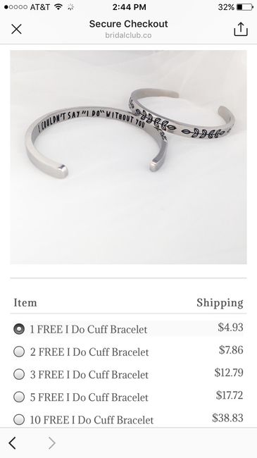 So there was an ad from a place called bridalclub.co on my IG feed, and supposedly they will send you a free bracelet for your bridesmaid(s) and all you have to do is pay shipping. So what's the catch? Of course you pay some money for shipping (like...