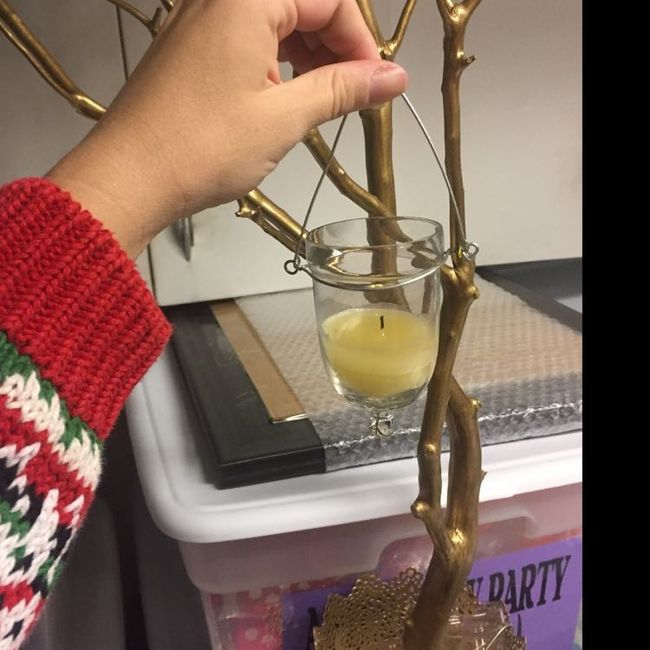 Has anyone done this or attended a wedding that had these? We made about 20 of these 42 inch trees for our tall centerpiece tables. Our plan is to put 5-6 hanging candles on each tree with fishing line to make them float. I tested it out and it works...