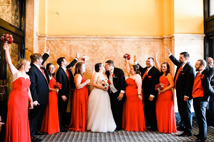 Hey y'all! Hope y'all are well. It looks like we're going to have one groomswoman and one bridesman. I want them to stand out just a bit, but not too much. Our other ladies will be in burgundy floor-length dresses and our guys will be in grey suits....