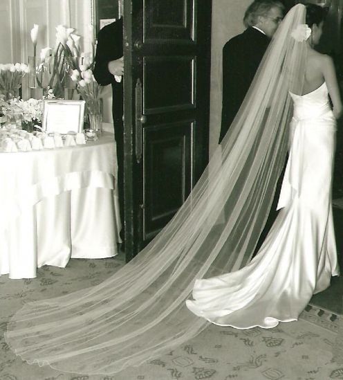 I love the look of the long veils, but it almost seams like a crime to cover the back of my dress. If I bought one it would only be a single layer (so hopefully not to thick/still see through) and I would only wear it for some pics and the ceremony....