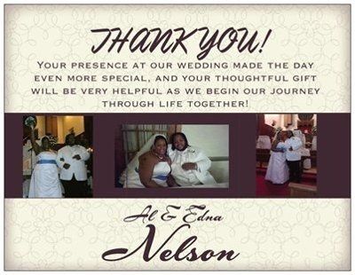 I'm working on my thank you list. I'm trying to decide if I should make a thank you postcard with a picture on it, or buy regular thank you cards, and add in a wallet size picture of us from our formal shots.. which sounds better?