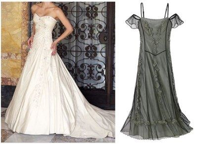 I kind of looking for something on the non-traditional side. I am in love with two dresses. Ironically I originally said I hated dropped waist. I love this dress by Jacquelin with the black floral print on the skirt....