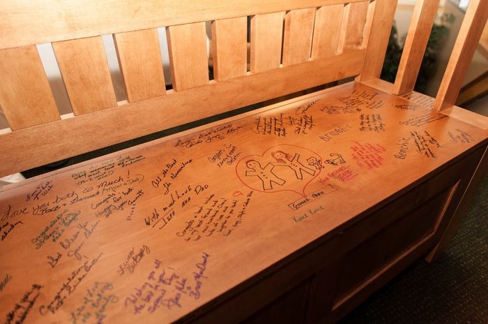I want to have a guest book that I can display in my home or bring out during the holidays. The only thing I could think of is having people write on a slip of paper and stick the paper in a glass Christmas ornament. But our wedding is in August....