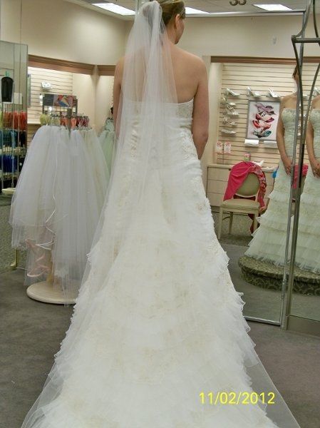 Any girls have a davids bridal dress??? dont have any pictures of my dress with me in it cause it is at my mother in laws, actually hanging in my fiance's old childhood bedroom. (i think thats cute lmao) so i ahvent had a chance to get pictures but...