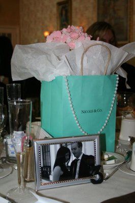 I saw these online and thought they were cute and practical. I would use gold bags, red tissue paper, and hang multiple strings of pearls out of the bag. Do you like? (I know I need to pick a centerpiece soon, so many options, ugghhh!)