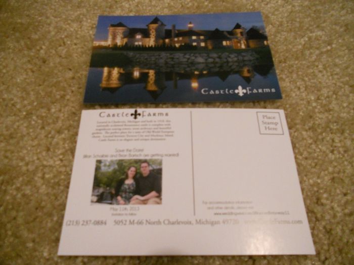 Hey everyone! My FH and I just finished our save-the-dates tonight and are putting them in the mail tomorrow! We bought post cards from our venue and then printed on the backs of them (names, date, picture of us, wedding website) and then of...
