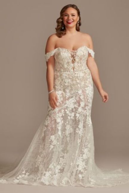 Dose anyone have a picture of them wearing this dress? It’s from David’s bridal. They didn’t have my size, so I had to order it. I would love to see it on someone besides a model. I’m a plus size 18W