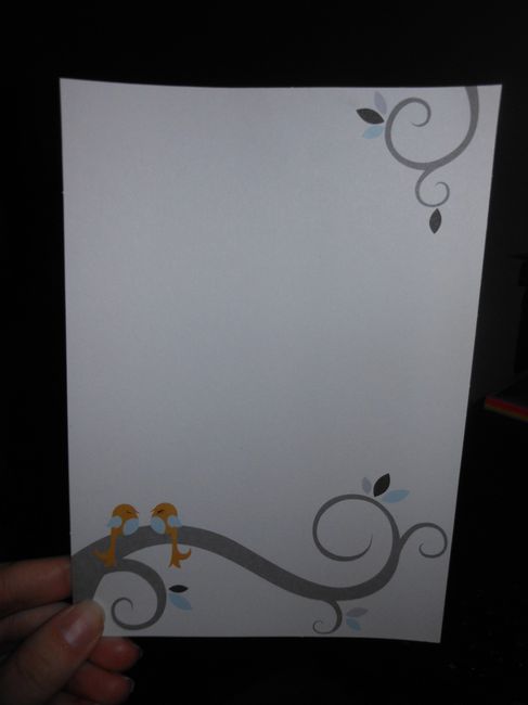 4513 days agoSo these are my invitations - they are only 5x7 and I cut some practice paper to try and figure out the font sizes I needed since they have a border on them. My printer won't print that size paper (I guess since it feeds from the bottom it can't pick...