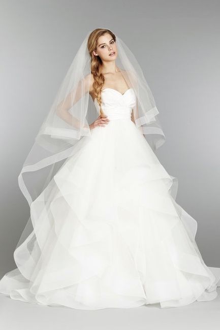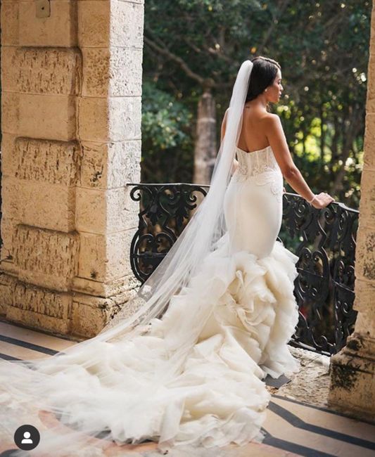 Hi, Ladies - How do we feel about this veil? It is meant to go with the gown pictured (which I LOVE). I could look into a shorter version of this veil with the similar edging, but just want to know your thoughts of how this combo looks ☺️