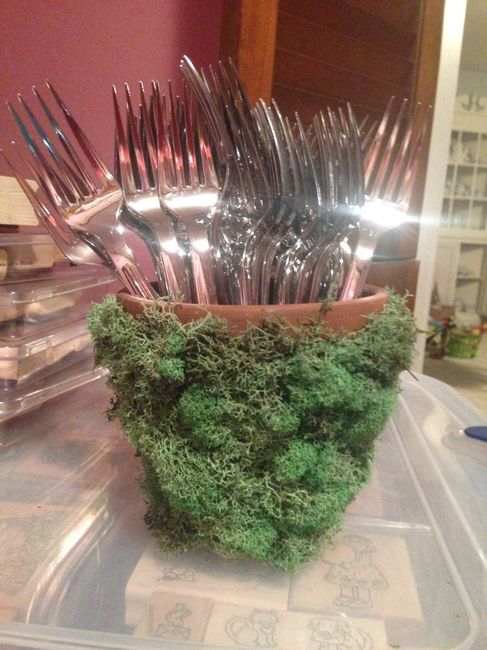 I am trying to figure out what to use to hold our utensils at the buffet table... Would this look ok or just ridiculous? All opinions are welcome. Thank you ladies.