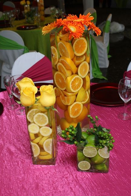 So I was thinking about doing centerpieces that didn't include flowers because my venue includes runners, mirrors, and a hurricane centerpieces in the decor package. I was going to do something similar to the picture below but with a candle that was...