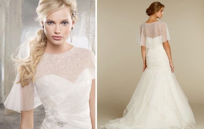 Hi Ladies, I need some input on whether this is too much bling or if they even go together. We are having a church ceremony and it was "requested" to have shoulders of the bride covered. So I have been searching for a jacket/bolero or capelet to do...