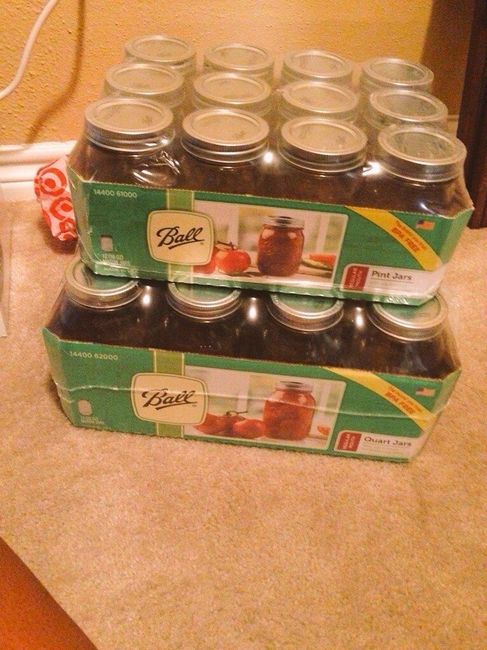 I got my mason jars ready to do the centerpieces. Of course I'm not doing them now but each week I'm starting to buy one item for the wedding since I have over a year left. I got 12 pint size and 12 quart size jars. Should I switch one out? For those...
