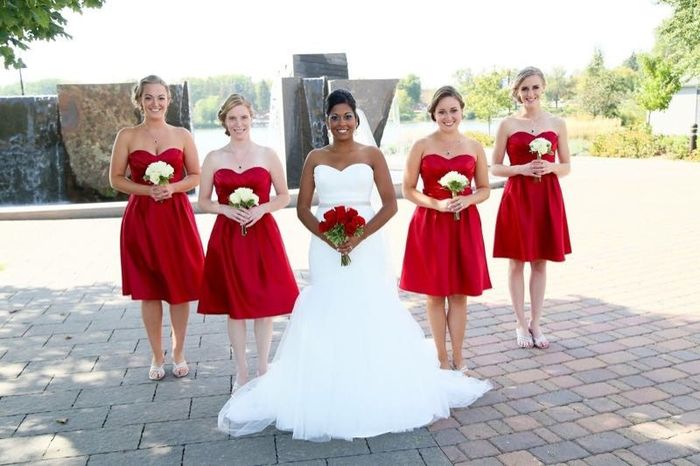Just wanted to see some different styles...who doesn't love looking at pretty dresses? =) Attach a picture of the dresses you are having your girls where at your wedding. I attached a picture of mine....my girls will be in Concord Grape (dark...